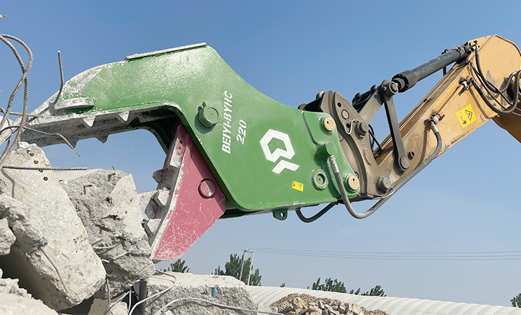 粉碎鉗又稱液壓粉碎鉗,是由鉗體、液壓油缸、可動顎和固定顎組成,外部液壓系統為液壓油缸提供油壓,使液壓粉碎鉗的可動顎和固定顎一張一合,達到粉碎物體的效果。